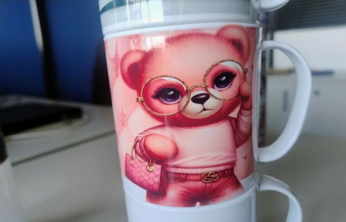 Taza diseño de marca con toques 3d y dorado