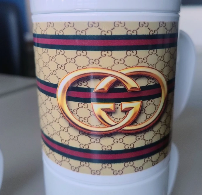 Taza diseño de marca con toques 3d y dorados